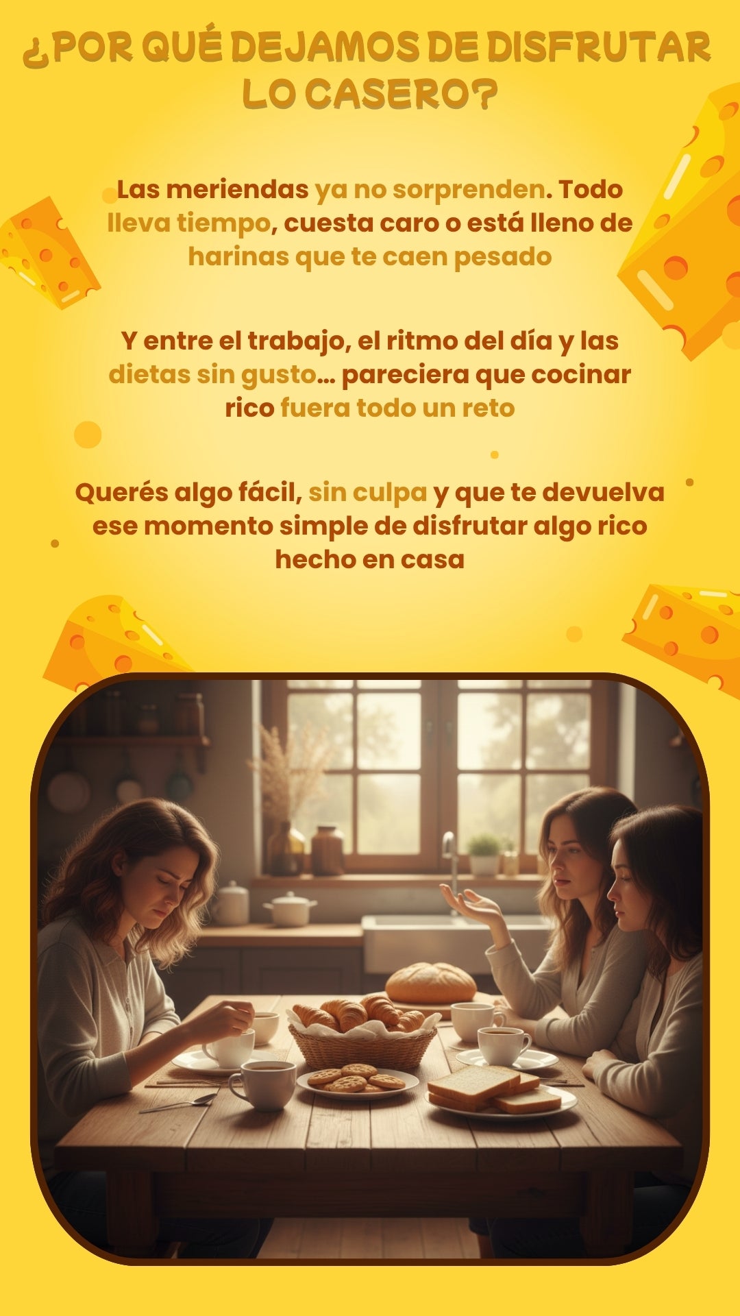 Solo ingredientes básicos y queso (del tipo que tengas en casa). No necesitás máquinas especiales ni experiencia previa. Recordá si no tenes wafflera podes hacer todo en sarten.